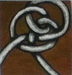 Een groepsexpositie die bestaat uit allemaal werkjes van 5 x 5 cm. Voor deze expositie heb ik vijf werkjes gemaakt in acryl op karton met als thema de knoop.