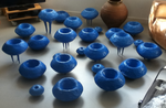 Een expositie die draait om kleine kunstwerkjes van 5 x 5 cm. Voor deze expositie heb ik 5 werkjes gemaakt die aansluiten op het gegeven 5x 5. Het zijn werkjes waarin ik per werkje 5 variaties van dezelfde kleur heb verwerkt; 5 x groen, 5 x blauw, 5 x rood, 5 x paars en 5 x geel.