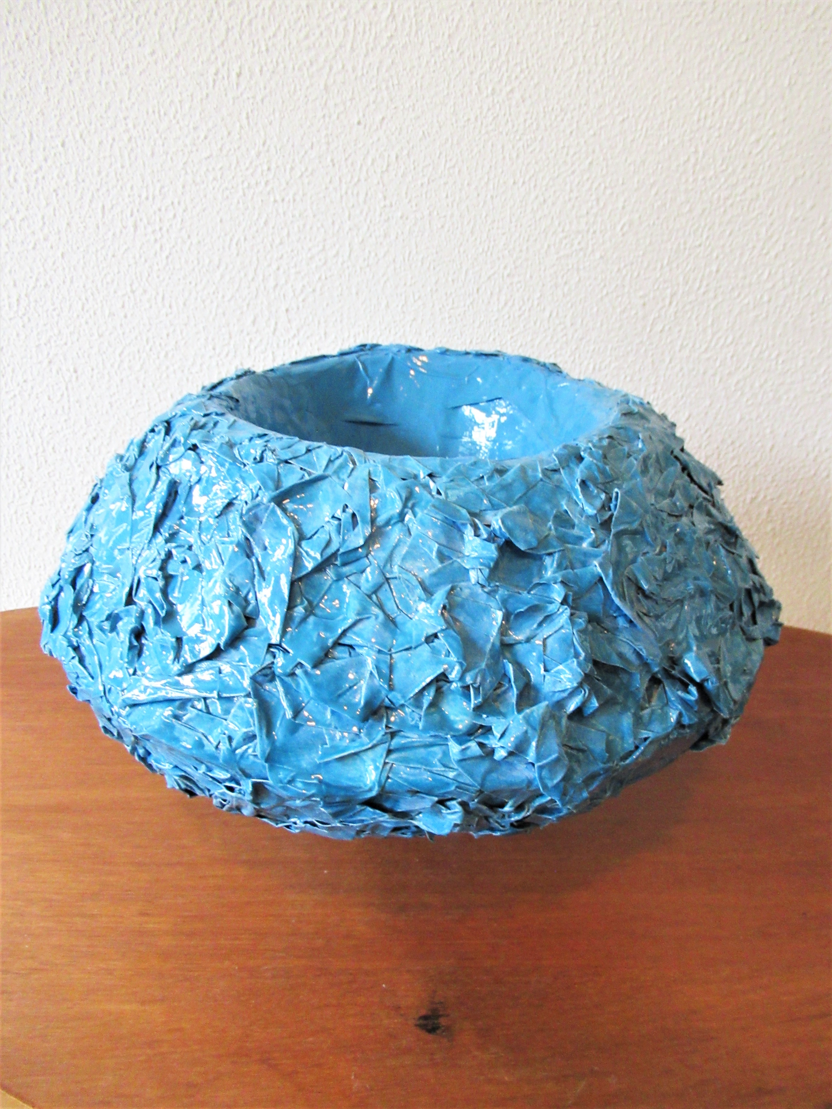 blauw papier beeld maché ufo schaal
